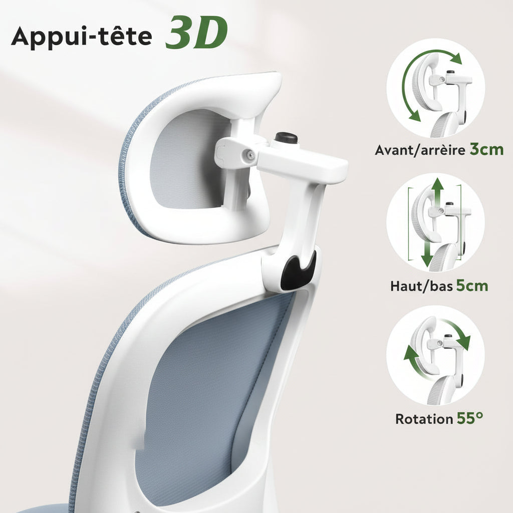 🔹 Appui-tête ajustable : soulage la nuque et les cervicales