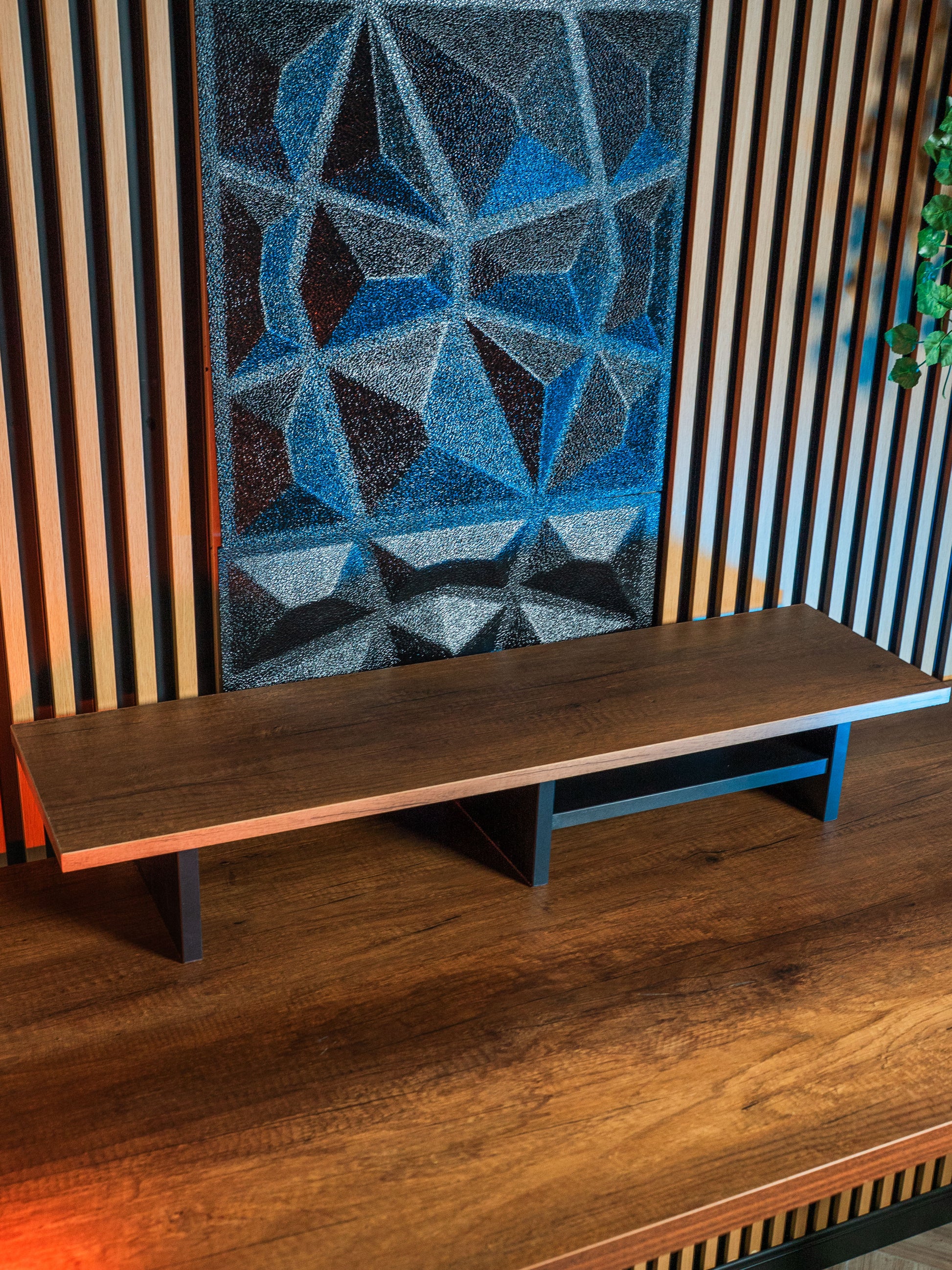 Support d’écran en MDF robuste, conçu pour rehausser votre moniteur à une hauteur idéale.